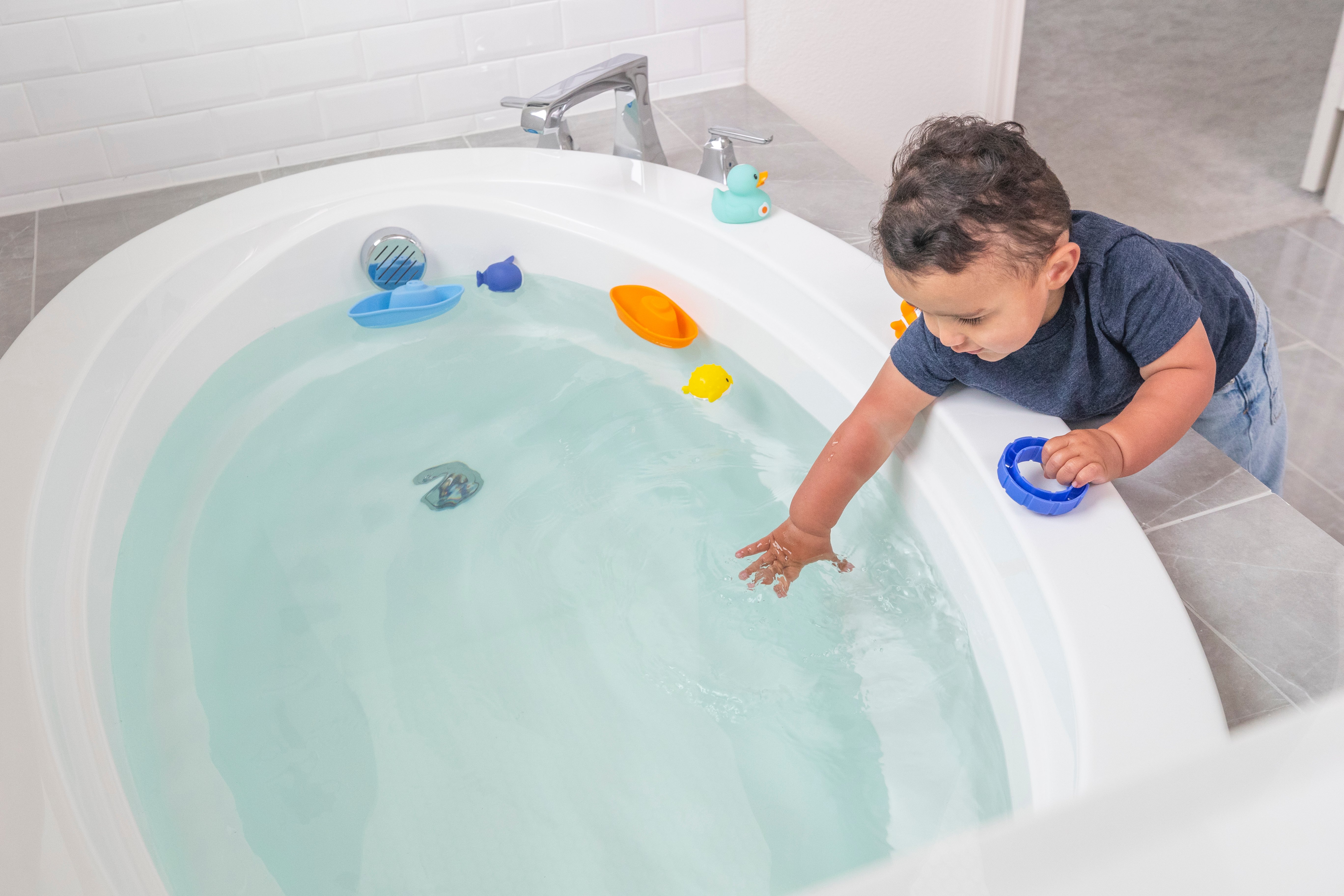 Drownings can occur in as little as one inch of water. Always stay close and alert during bath time to keep your baby or toddler safe.